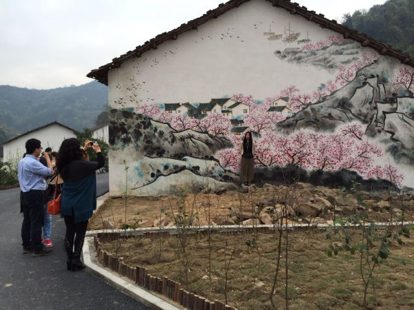 自2013年省旅游局啟動快樂鄉(xiāng)村游活動以來,內(nèi)容更豐富了,開始是以花為媒,推薦鄉(xiāng)村賞花觀葉的線路,現(xiàn)在還是以花為媒,把鄉(xiāng)村最美的的旅游元素——花(葉)畫在墻上。搭配宣傳鄉(xiāng)村美食,更有吸引力。麻城龜峰山書記洪俊波表示,龜峰山的旅游口號是“人間四月天,麻城看杜鵑”,其實龜峰山四季都值得游覽,即使不在花期,來爬爬山,吃吃吊鍋,品品墻繪,都是享受。羅田徐鳳沖村的村長說,“來我們村畫畫都是幾個年輕人,剛好畫的時候下了幾乎一個月的雨,村民們自發(fā)組織到山上砍毛竹做腳手架,為畫高層的墻繪提供幫助,熱情地招呼畫師到自己家吃住。這樣的好事我們村求之不得啊?!?